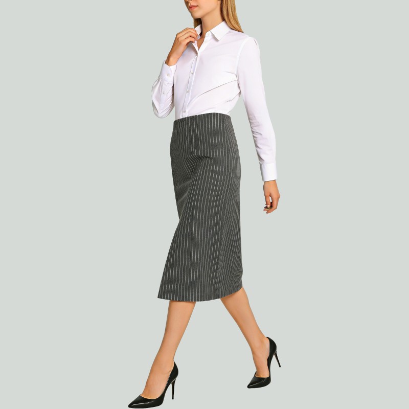 Pattern: Features a fine pinstripe pattern throughout the skirt.