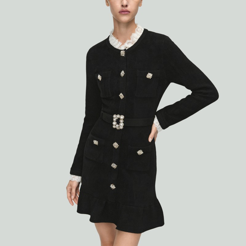 Details: The dress is accented with an adjustable belt, adding visual depth and a stylish finishing touch to the overall look.