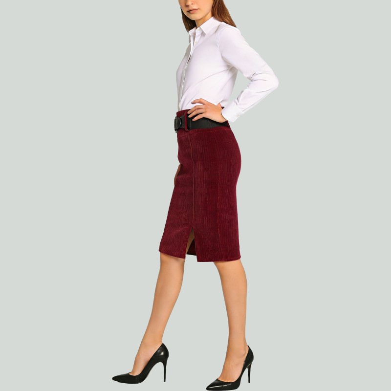 Key Features: Knee-length pencil skirt in a vintage style, featuring a front slit design.