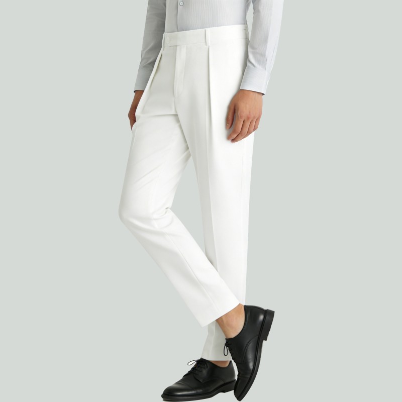 Style: Featuring a minimalist business aesthetic, these trousers boast a clean, solid-white color palette that exudes a composed and sophisticated air, making them suitable for a wide range of formal and semi-formal occasions.
