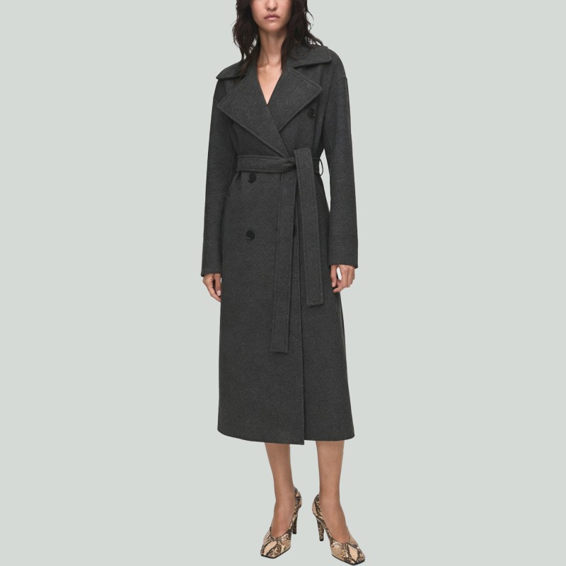 Women's Long Double-Breasted Belted Cashmere Trench Coat